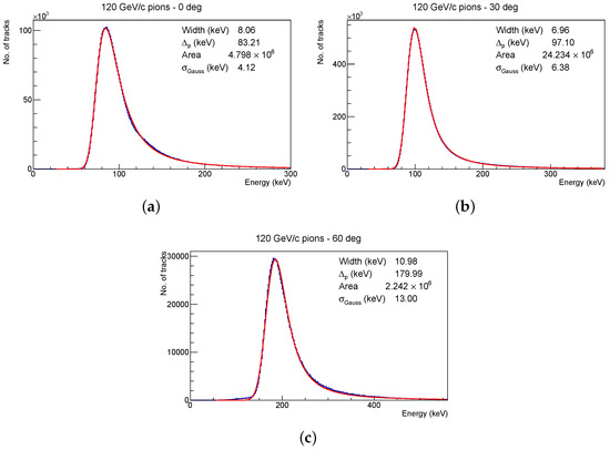 with the per-pixel energy of a particle trace being , the sensor thickness being = 300 µm, the density of silicon being g cm−3, and the reconstructed impact angle with respect to the sensor normal being .