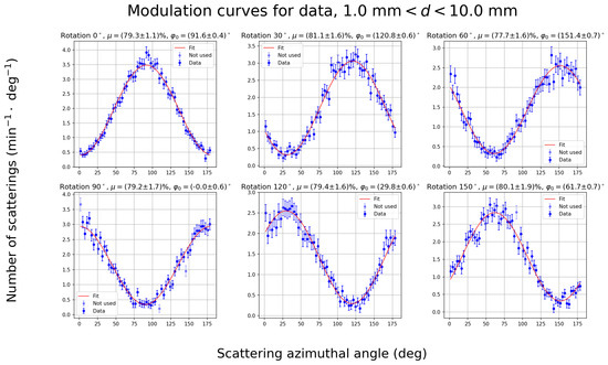 where is the number of detected scatter electron–photon pairs, and is the modulation measured at 100% polarized radiation. We can solve Equation (19) for to estimate the minimal amount of detected scatter events: