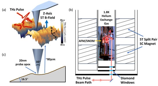 - Kim, R.H.J.; Park, J.M.; Haeuser, S.J.; Luo, L.; Wang, J. A sub-2 Kelvin cryogenic magneto-terahertz scattering-type scanning near-field optical microscope (cm-THz-sSNOM). Rev. Sci. Instrum. 2023, 94, 043702. [Google Scholar] [CrossRef] [PubMed]