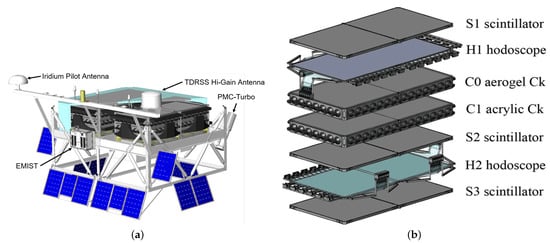 - Rauch, B.F.; Zober, W.V.; Borda, R.F.; Bose, R.G.; Braun, D.L.; Buckley, J.; Calderon, J.; Cannady, N.W.; Caputo, R.; Coutu, S.; et al. The Trans-Iron Galactic Element Recorder for the International Space Station (TIGERISS). In Proceedings of the 38th International Cosmic Ray Conference (ICRC2023), Nagoya, Japan, 26 July–3 August 2023; Volume 444, p. 171. [Google Scholar] [CrossRef]