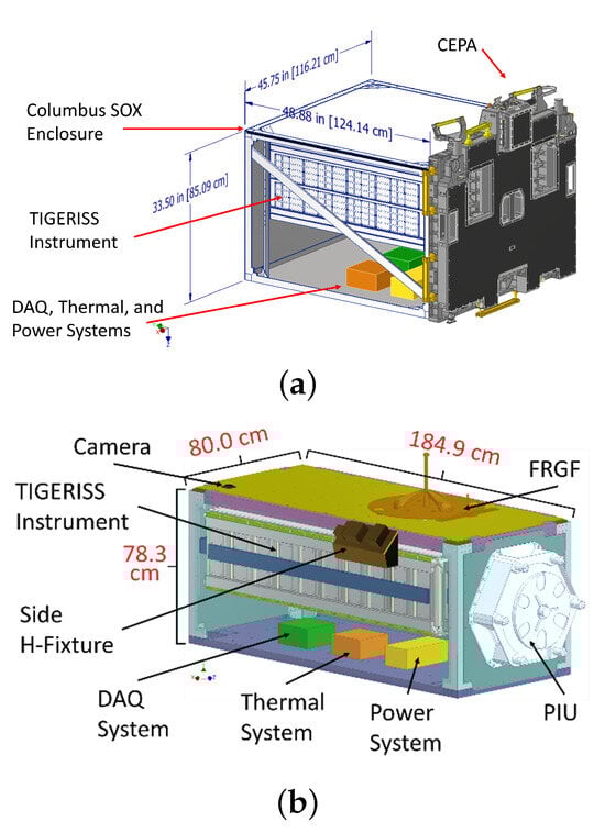 (a) Columbus SOX TIGERISS payload technical model. (b) JEM-EF standard TIGERISS payload technical model.