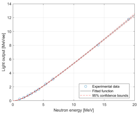 where Ee is the electron energy in MeVee and L0, L1 are fitting parameters. The experimental data have been processed in the Matlab SW and the fit function was employed. Calculated fit parameters and their confidence bound of 95% are stated in Table 4.