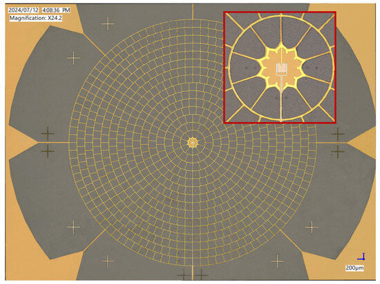 - McKenney, C.M.; Austermann, J.E.; Beall, J.A.; Dober, B.J.; Duff, S.M.; Gao, J.; Hilton, G.C.; Hubmayr, J.; Li, D.; Ullom, J.N.; et al. Tile-and-trim micro-resonator array fabrication optimized for high multiplexing factors. Rev. Sci. Instrum. 2019, 90, 023908. [Google Scholar] [CrossRef] [PubMed]