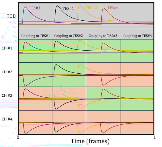 - Tatsuno, H.; Bennett, D.; Doriese, W.; Durkin, M.; Fowler, J.; Gard, J.; Hashimoto, T.; Hayakawa, R.; Hayashi, T.; Hilton, G.; et al. Mitigating the effects of charged particle strikes on TES arrays for exotic atom X-ray experiments. J. Low Temp. Phys. 2020, 200, 247–254. [Google Scholar] [CrossRef]