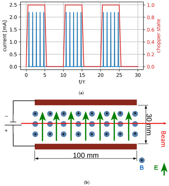 - Wiesner, C.; Droba, M.; Meusel, O.; Noll, D.; Payir, O.; Ratzinger, U.; Schneider, P. Experimental performance of an E × B chopper system. Phys. Rev. Accel. Beams 2017, 20, 020101. [Google Scholar] [CrossRef]