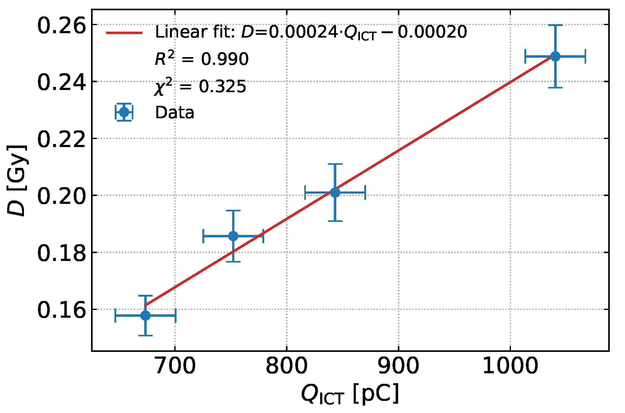 - Jorge, P.G.; Grilj, V.; Bourhis, J.; Vozenin, M.C.; Germond, J.F.; Bochud, F.; Bailat, C.; Moeckli, R. Technical note: Validation of an ultrahigh dose rate pulsed electron beam monitoring system using a current transformer for FLASH preclinical studies. Med. Phys. 2022, 49, 1831–1838. [Google Scholar] [CrossRef] [PubMed]