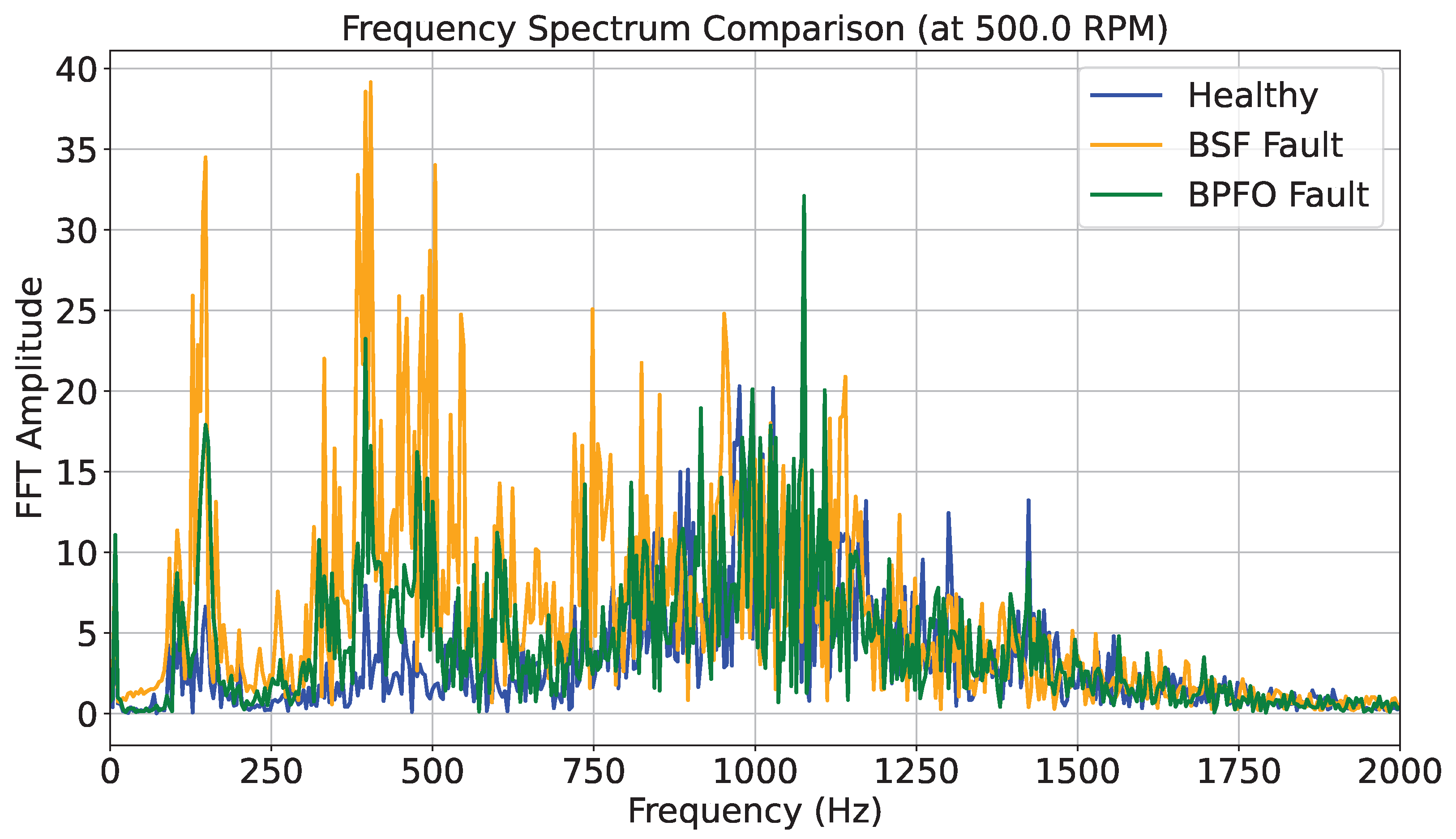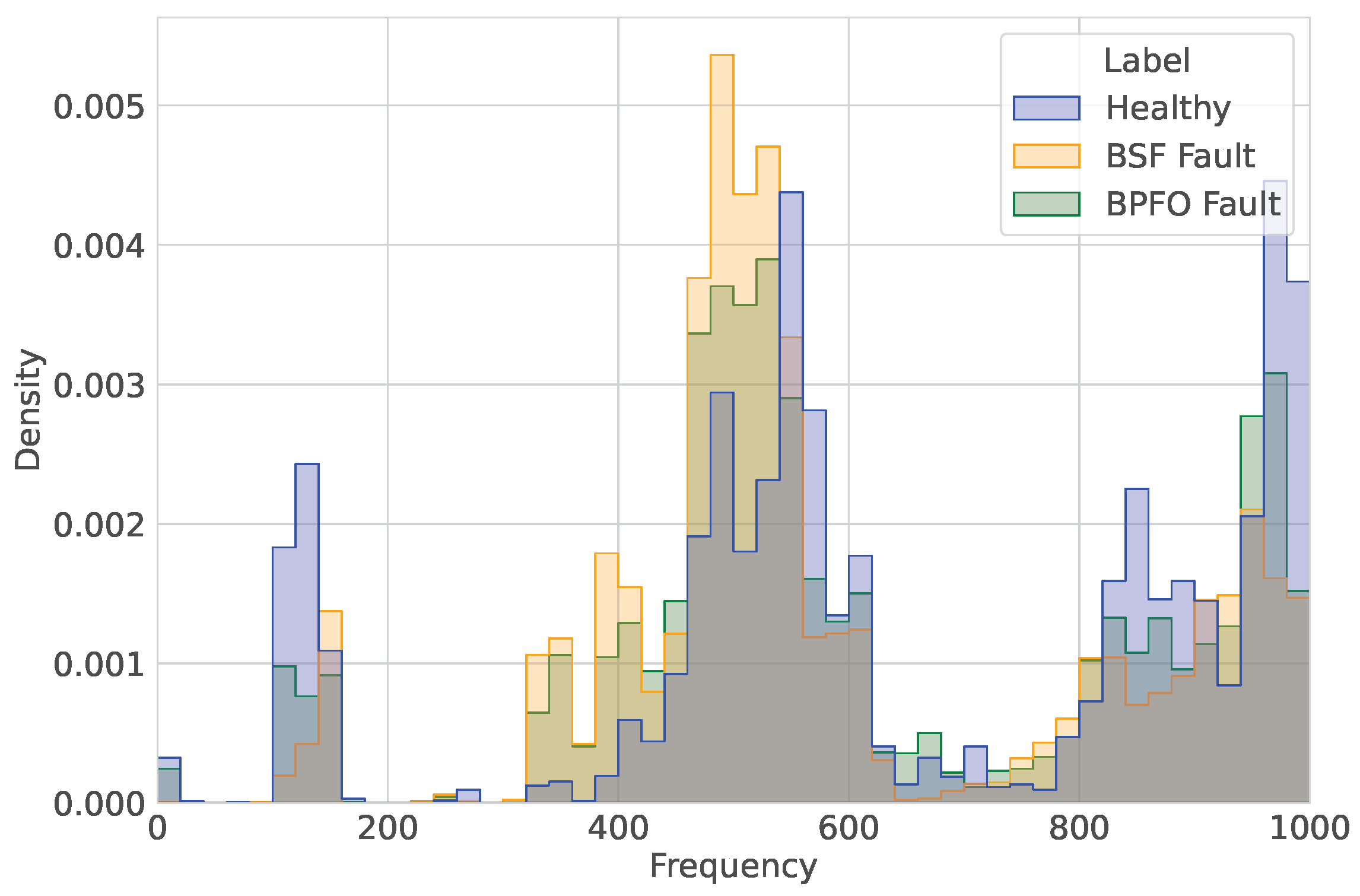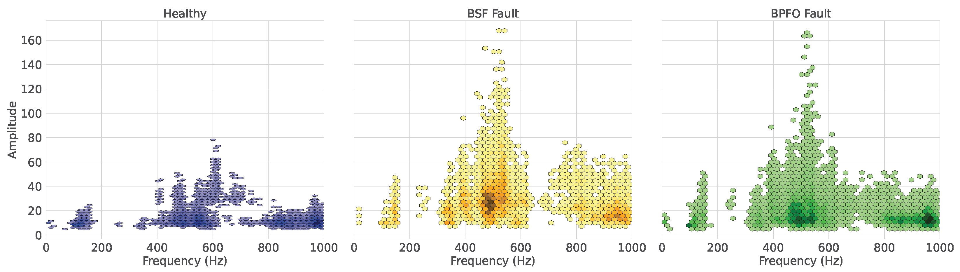 | Spectral Peaks | Max amplitude in characteristic defect frequency bands | Reveals BPFO, BPFI, BSF, and FTF-related harmonics. |