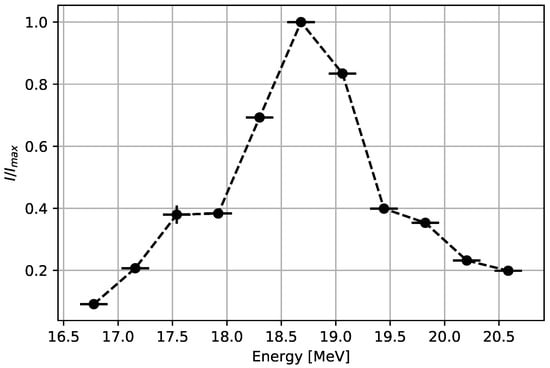 Compact medical cyclotrons for the production of radioisotopes have an energy in the range of 15–25 MeV and are characterized by a considerable potential for fundamental and applied research, especially if they are equipped with a beam transfer with independent access to the beam area []. They are usually installed in hospitals, where space constraints severely limit this possibility. For all activities beyond the production of F—the main radioisotope for Positron Emission Tomography (PET)—accurate knowledge of the beam energy distribution is often crucial.