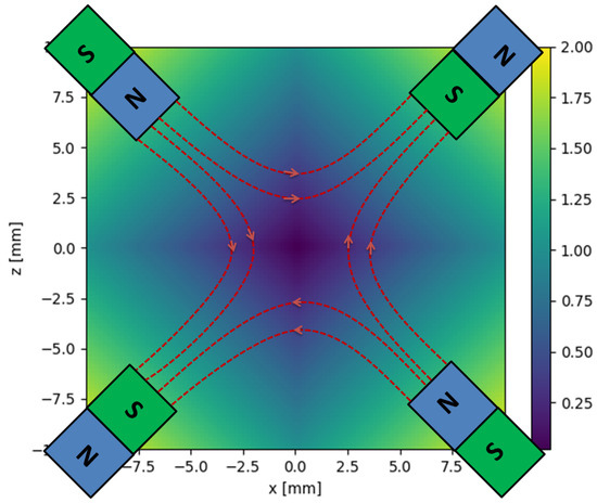 where is the field gradient along the horizontal axis x and vertical axis z. Equation (1) is represented in Figure 1 where the field increases for larger distance from the center.