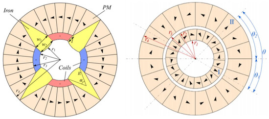 - Halbach, K. Design of permanent multipole magnets with oriented rare earth cobalt material. Nucl. Instrum. Methods 1980, 169, 1–10. [Google Scholar] [CrossRef]