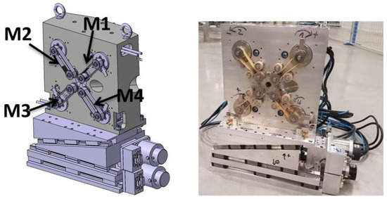 Figure 15. Mechanical design (left) and an assembled QUAPEVA (right) mounted on a translation table.