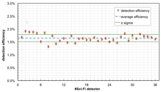 in reasonable agreement with the 1.82% value estimated from the simulation (Figure 3). The detection efficiency for all the fibers is reported in Figure 15.