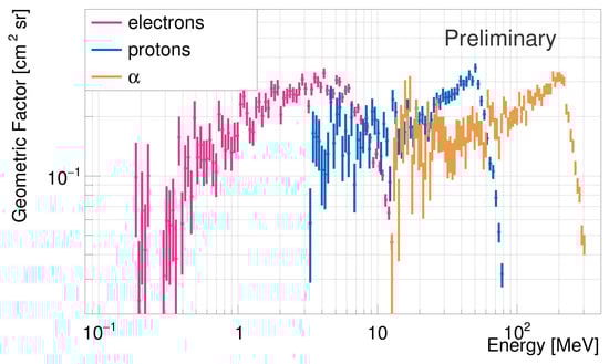 - Sullivan, J. Geometric factor and directional response of single and multi-element particle telescopes. Nucl. Instr. Methods 1971, 95, 5–11. [Google Scholar] [CrossRef]