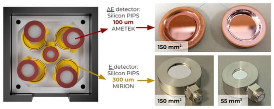 The LEM’s particle identification capabilities rely on the long-established ΔE-E spectrometric method, which is discussed in references [18,19,20]. The approach employs five couples of silicon detectors (Passivated Implanted Planar Silicon or PIPS) positioned in a telescopic arrangement. The PIPS detector has a typical resolution of about 10 keV.