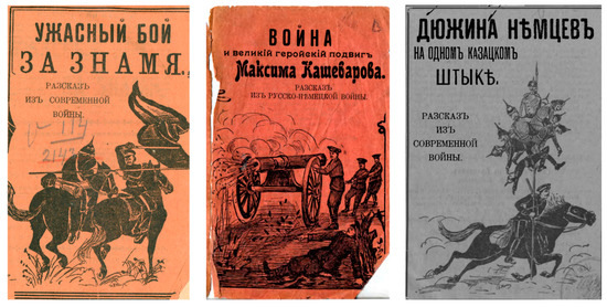 In the critical literature that focuses on early twentieth-century Russian literature, there is no such concept as ‘dime’ literature. There are, however, other labels (e.g., Bul’varnaja literatura, Massovaja literatura), which, in more or less detail, aim at defining the variegated situation of the trends in mass literature at the beginning of the century (see Blagoj 1925; Bjalik 1972; Lotman 1997). Previous research has established that WWI was a major topic of the cultural discourse of that time, even after the establishment of the Soviet government (see Gatrell 2005; Ivanov 2005; Cohen 2008, pp. 3–5; Petrone 2011; Petelin 2012, pp. 10–21). However, how literature contributed to the way in which war was represented and propagated to the population in the war period and what were the features of this kind of literature are topics that deserve closer scrutiny. On the grounds of the analysis of the style, content, and even of the ‘mere’ appearance of some ‘mass’ publications aimed at the broader public, the goal of this article is to stimulate a consistent re-evaluation for this type of ‘consumer’ war literature.