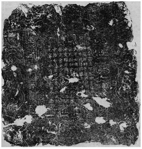 Similar to the contents of the epitaph cover, the text of Wu Tong’s epitaph is surrounded by hexagrams from the Book of Changes and ganzhi (干支) symbols on its margins. These are the same practices as inscribing Taoist symbols on cosmographic boards (shipan, 式盤) and bronze mirrors, and they all demonstrate strong Taoist cultural elements. Patterns of this type can also be seen in the epitaph of Ma Zhi (馬穉) (524–600) (Figure 3), which was inscribed in the twentieth year of the Kaihuang period (600) (See Zhao 1995). Wu Tong’s epitaph and Ma Zhi’s epitaph were inscribed at the same time and in the same place, with similar Taoist characteristics, and both were written in the clergy style (lishu, 隸書); there is a possibility that they were written by the same author. This indicates that in the Sui Dynasty, Taoism actively participated in funeral ceremonies.