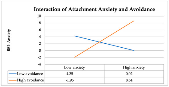 Interaction of Attachment Anxiety and Avoidance Predicting BSI-Anxiety.