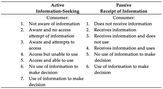 Some of the traditional reasons for seeking health information are coping with a health-threatening situations, medical decision-making, behavior change, and preventative behavior [95]. However, both the type and amount of health-related information sought varies. Other characteristics include variation in the actions taken to obtain information, as well as the sources used [95]. The characteristics of health information-seeking behavior can be summed into two main dimensions: information and method. Information refers to type (the content and diversity of information and its search) and amount (how much information sought), as well as its details. Method refers to the actions or processes individuals use to obtain information, including the sources of information used [95].