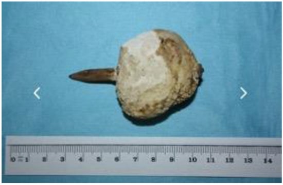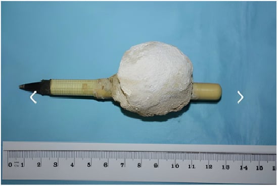 - Tuncer, H.; Karacam, H.; Cam, B.; Huber, H. A Self-Inserted Foreign Body in the Urinary Bladder and Urethra. Cureus 2021, 13, e16322. [Google Scholar] [CrossRef]