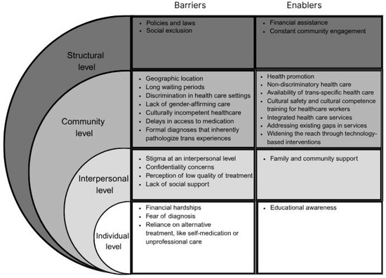 - Lerner, J.E.; Robles, G. Perceived barriers and facilitators to health care utilization in the United States for transgender people: A review of recent literature. J. Health Care Poor Underserved 2017, 28, 127–152. [Google Scholar] [CrossRef]