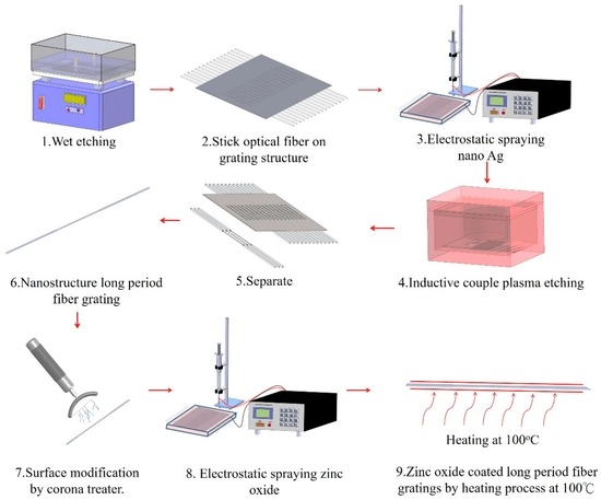 3.1. The ZnO-Coated LPFG Gas Sensor Manufacturing Process