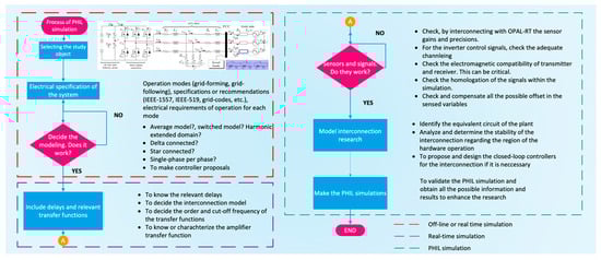 The main merit that we have wanted to highlight with the flow chart is that the researcher, through a series of documented steps, can achieve a replacement of mathematical models with real plants, as in the case of the inverters presented in this article, and thus interact, in a flexible way, with network models that may not be available in a laboratory. This enriches the possibilities of carrying out applied research with an industrial approach in a safer way and with lower investment requirements in prototypes.