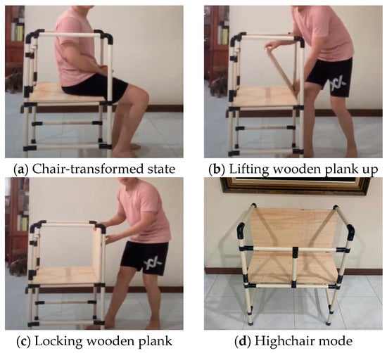 Phuah et al. (2022) proposed a repurposable children’s furniture concept that can serve multiple functions throughout a child’s growth, reducing waste and resource consumption [3]. However, prior to the research published by Phuah et al. (2022), to our knowledge, no study has been published on the conceptualization of inventive and repurposable children’s furniture for better functionality that would promote extended use. Most repurposed furniture designs are limited to ordinary and common functions between transformations, an issue that may be caused due to the underdeveloped research area [3]. This is supported by Cheng et al. (2021), who also reported on the seldom researched area of multipurpose furniture, resulting in the development of foldable furniture [7].