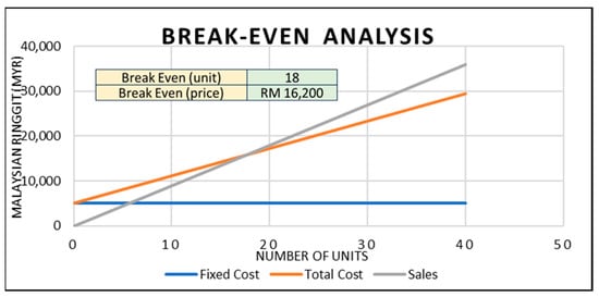 A break-even analysis is a financial calculation that weighs the costs of a new business, service, or product against the unit selling price to determine the point at which the business will break even [37]. Thus, it was used in the cost accounting to determine the number of units needed to cover all the aforementioned costs such as fixed cost and variable costs.