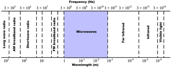 Microwave-assisted processes are chemical reactions that use microwave energy to heat and transform materials. The wavelength of microwaves ranges from about 1 mm to 0.1 m, corresponding to frequencies between 300 MHz and 300 GHz [26] (Figure 1). This range includes the entire super high frequency (SHF) band, which is commonly used in microwave communication systems. The mechanism of microwave-assisted processes involves the interaction between the microwave radiation and the molecules of the material being heated. There are three main mechanisms that contribute to the heating process: