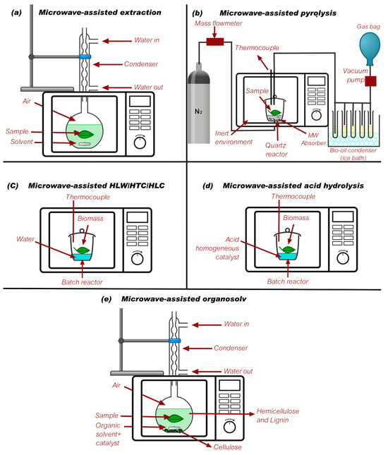There are different types of microwave-assisted techniques, such as microwave-assisted extraction (MAE), microwave-assisted organic synthesis (MAOS), microwave-assisted pyrolysis (MAP), microwave-assisted hydrothermal treatment (MAHT), microwave-assisted acid hydrolysis (MAAH), microwave-assisted organosolv (MAO), microwave-assisted alkaline hydrolysis (MAA), microwave-assisted enzymatic hydrolysis (MAEH), and microwave-assisted fermentation (MAF).