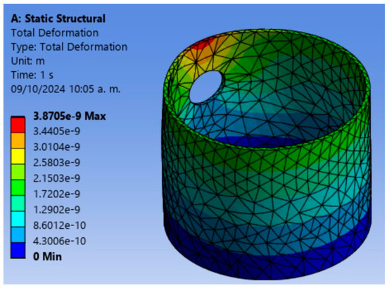 Figure 7. Total deformation for the glass vessel.