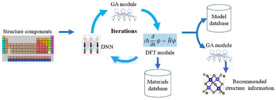 In recent years, several computational methods have been proposed and widely used for crystal structure prediction. These include the simulated annealing algorithm (SA) [6], genetic algorithm (GA) [7,8,9,10,11], particle swarm optimization (PSO) [12,13], and ab initio random structure searching (AIRSS) [14]. These methods have achieved notable success in predicting the structures of element, binary, and ternary systems. Building on these approaches, several software packages for structure prediction have also been developed. Notable examples include USPEX (Universal Structure Predictor: Evolutionary Xtallography), which uses the GA method [7,8], CALYPSO (Crystal structure AnaLYsis by Particle Swarm Optimization), which is based on the PSO method [13], an adaptive-GA method that combines classical potential and DFT calculations [11], and XTALOPT, which implements an evolutionary algorithm with hybrid operators [15]. In all of these packages and workflows, structural energies are typically calculated using density functional theory (DFT). While DFT provides accurate results, its high computational cost limits the size and complexity of the structure cells that can be modeled. In addition, the accuracy of DFT is influenced by the choice of exchange-correlation functional and basis set, which can introduce uncertainties in energy rankings and affect the prediction of the most stable structures. In contrast, artificial intelligence technologies offer the advantage of lower computational costs and shorter development cycles, presenting a promising alternative.