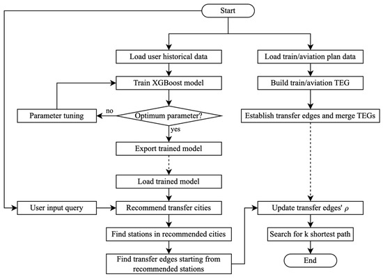 The XGB-HPPA algorithm mainly consists of two major steps. The first step involves using the XGBoost model to predict transfer cities and setting the heuristic factor for the transfer edges. The second stop involves the K shortest path planning algorithm.
