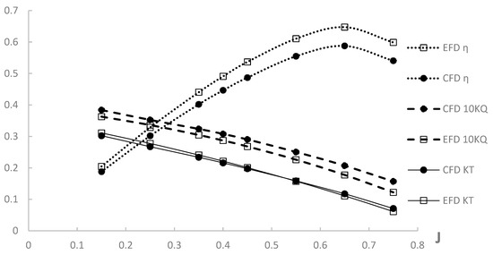 Propeller open water curves (EFD = Experimental Fluid Dynamics).