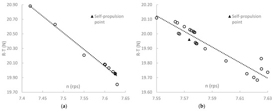 The self-propulsion performance parameters in Table 6 are calculated based on the KT and KQ curves fitted from the OPT experimental data provided by T2015 [1]: