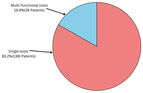 The number of granted patents in technology categories with single tools and multi-functional tools.