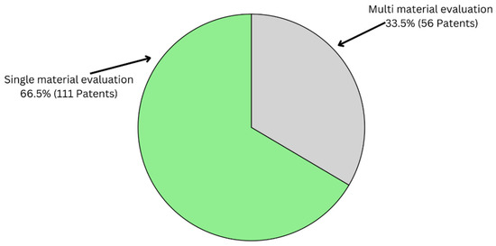 Number of granted patents in materials category that have single material evaluation and multi-material evaluation.