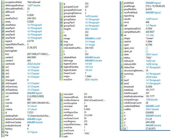 Various programs are used to process the obtained measurement results on the internal structure of materials, possible internal defects and heterogeneity faster and more clearly. Such an opportunity is provided by the MATLAB-based automated system. MATLAB programs are used in the paper production process to determine pulp quality, brightness and consistency in real time [52]; in software defect prediction [53]; for high-quality defect detection in the process of casting polymer films [54]; for the identification of localized defects in bearings in the automotive industry [55]; and in other areas.