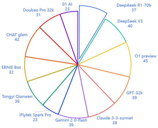 DeepSeek models (7 points) and O1 preview (6 points) outperformed the others. Chinese models generally lagged behind, with iFlyTek Spark Pro scoring 1 point and 01.AI scoring 2 points.