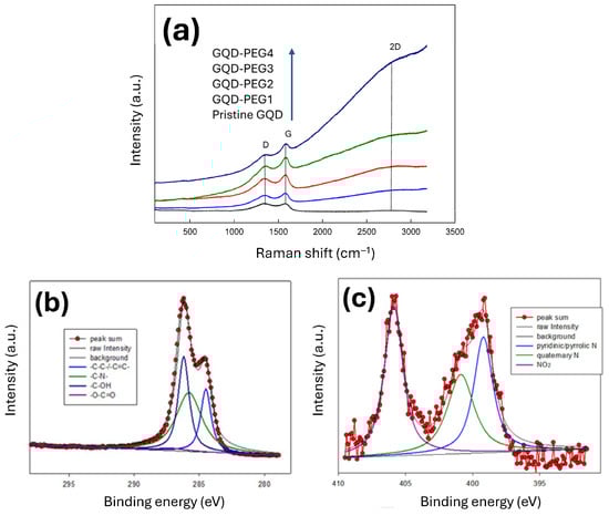 3.1. Morphology and Structural Characteristics of PEG-Modified GQD Clusters