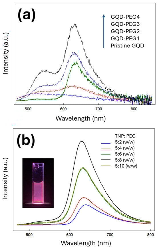 3.2. PL Emission from PEG-Modified GQD Clusters