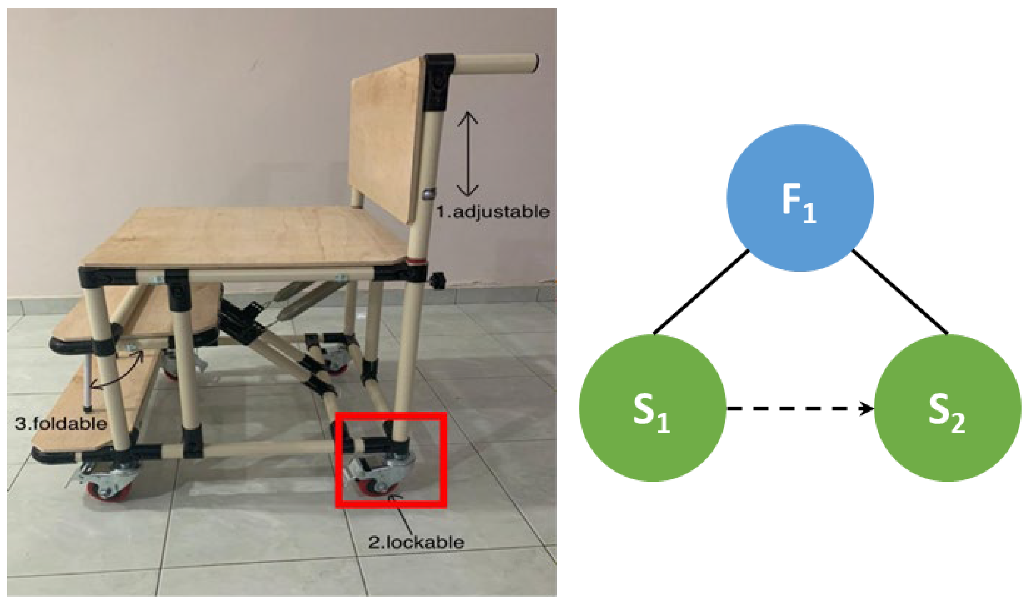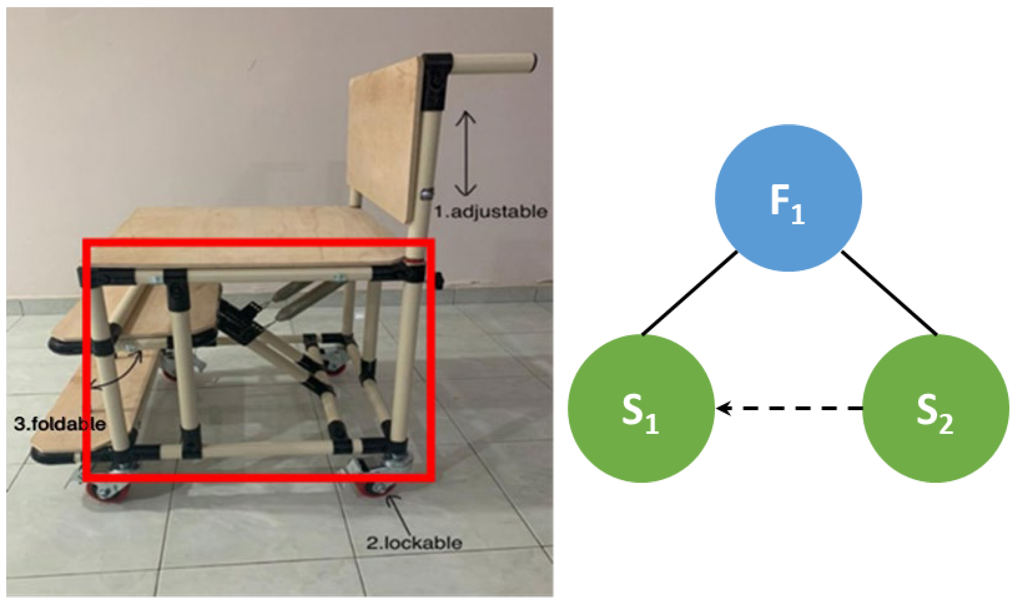 35]. Both these previous works integrated features and functions drawn from patent literature, existing commercial products, and relevant scientific research to design and develop a multifunctional stepladder with the functions of a wheelchair, walking aid, and Pilates chair. Based on these foundational studies, the current research aims to conceptually enhance the invention using TRIZ tools, namely contradiction analysis and Su-field analysis.