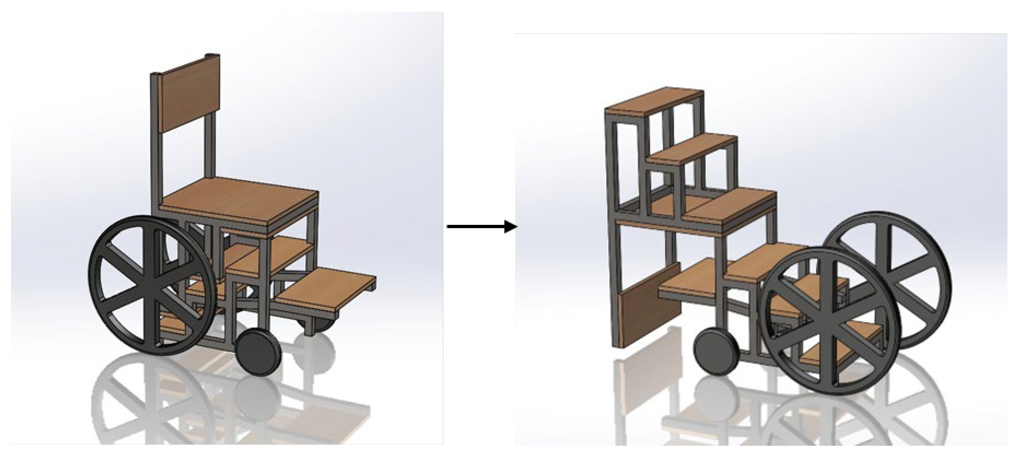 15]. Thus, designing a wheelchair with the function of a stepladder for caregivers can reduce the need to purchase multiple separate devices in nursing homes, making assistive care more accessible and affordable. Moreover, nursing staff and caregivers often experience musculoskeletal disorders (MSD) due to their work environment [