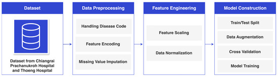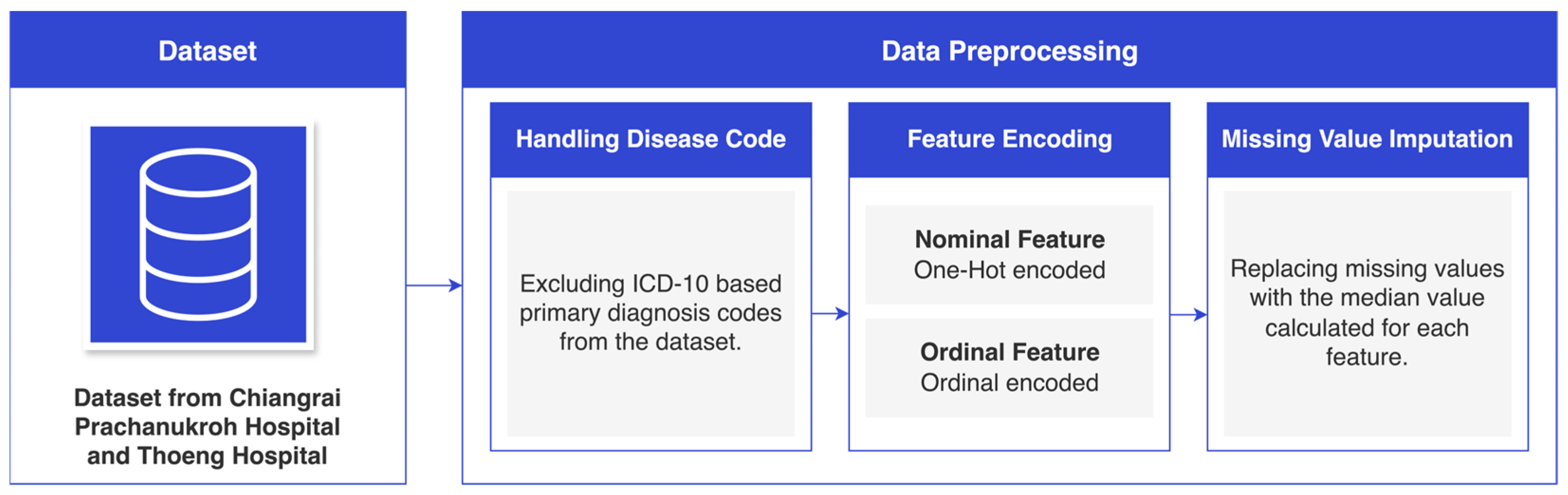 Figure 2 illustrates the data preprocessing process, which includes handling disease codes, feature encoding, and missing value imputation. The details of each step are explained in this section.