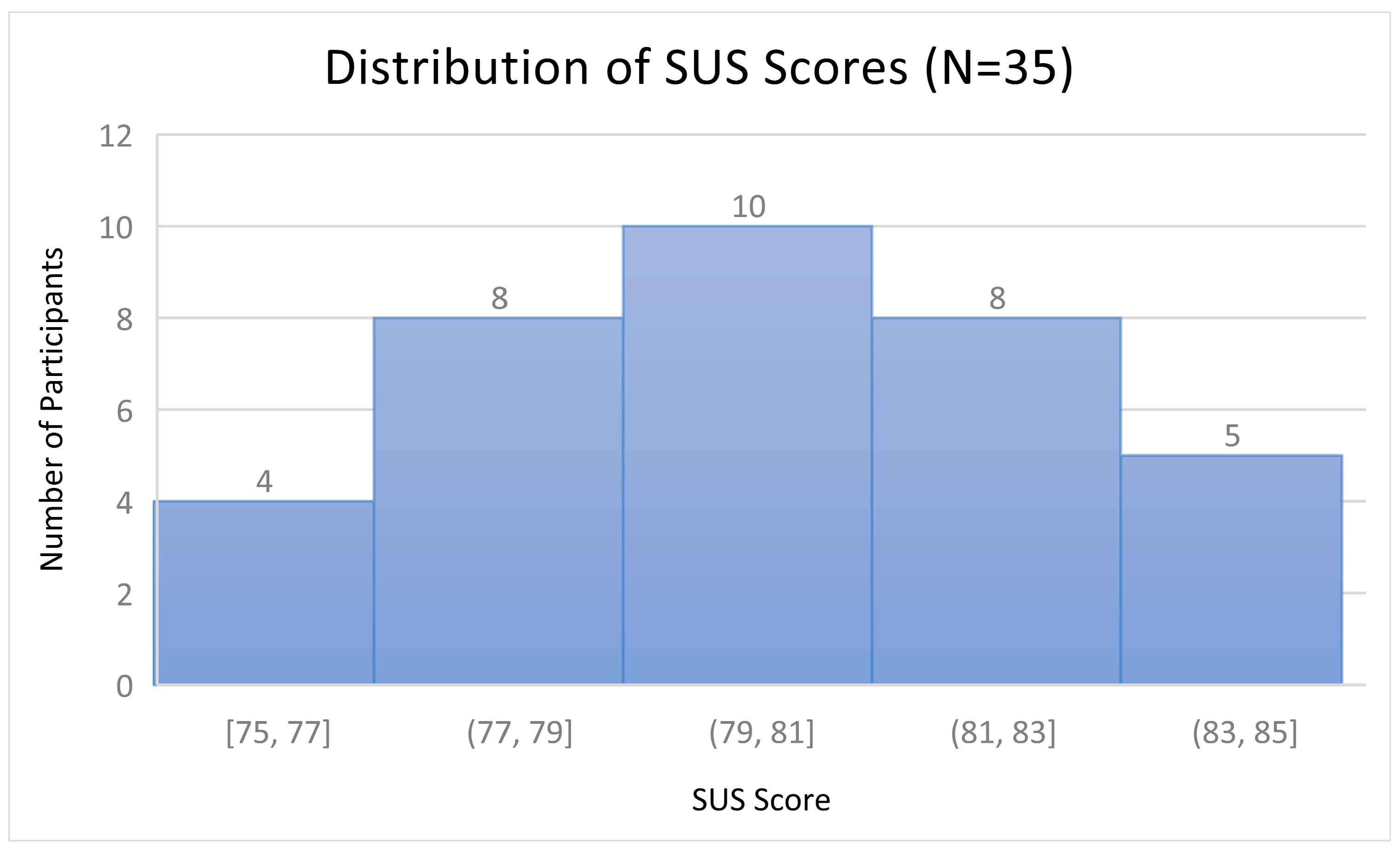 Figure 4. Distribution of System Usability Scale (SUS) scores among participants (N = 35).
