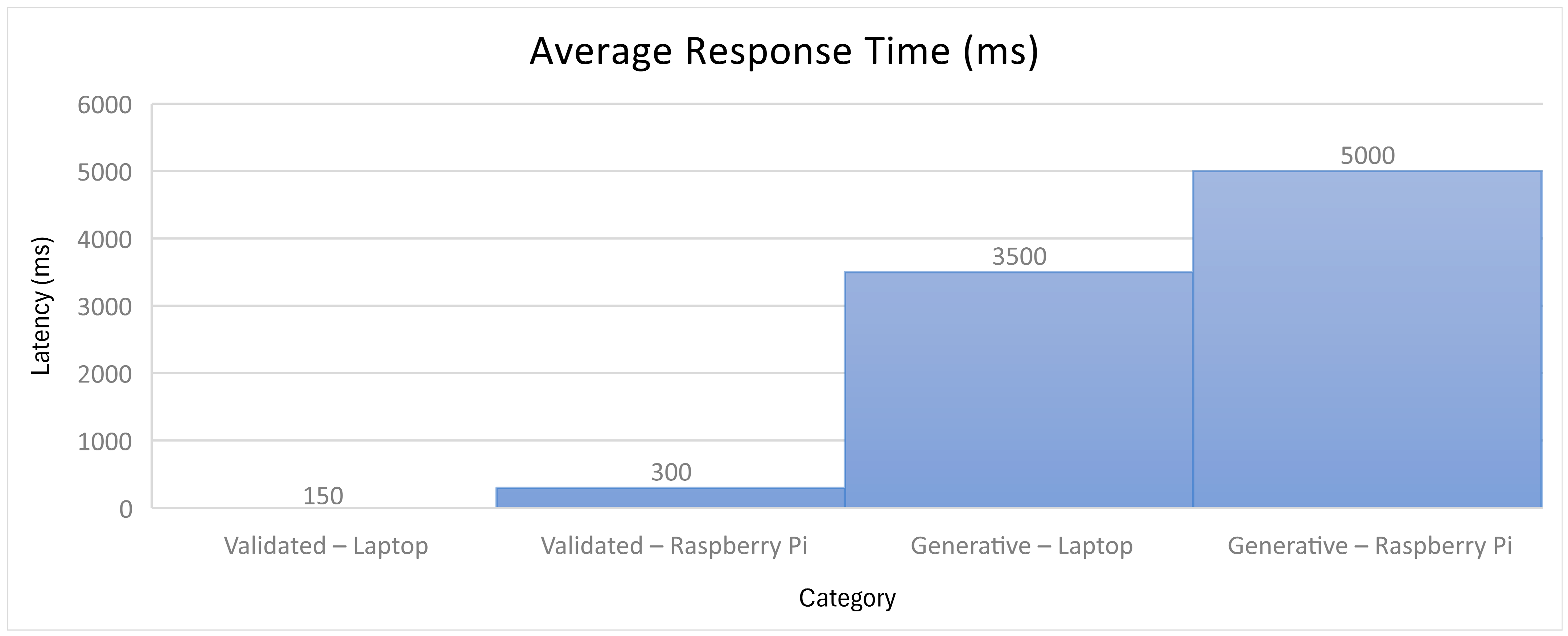 Figure 5. Average response times for validated and generative answers on laptop and Raspberry Pi.