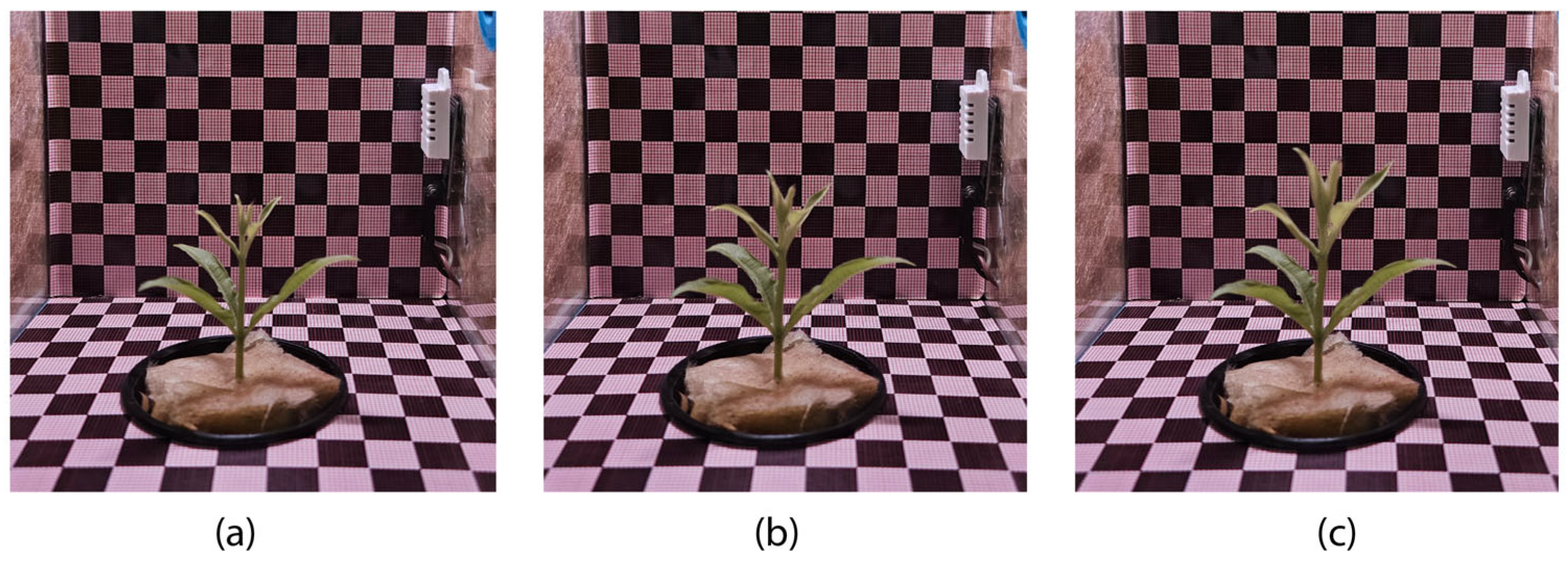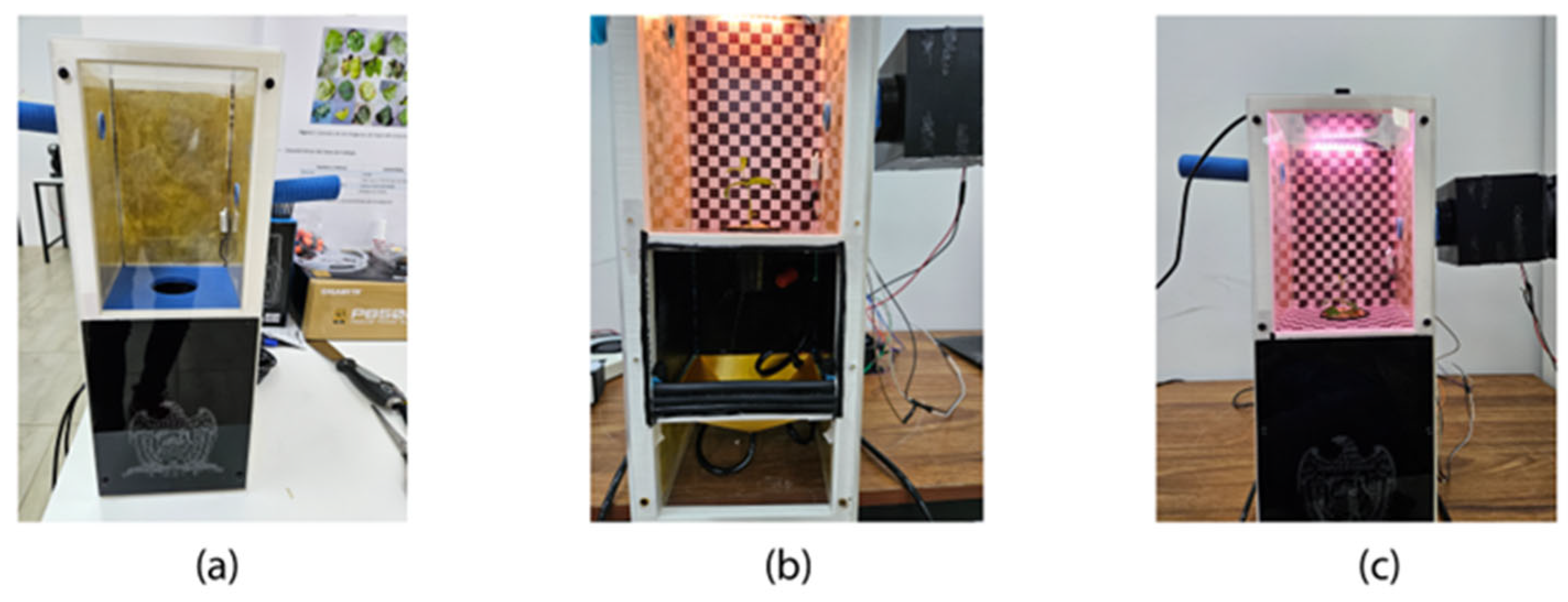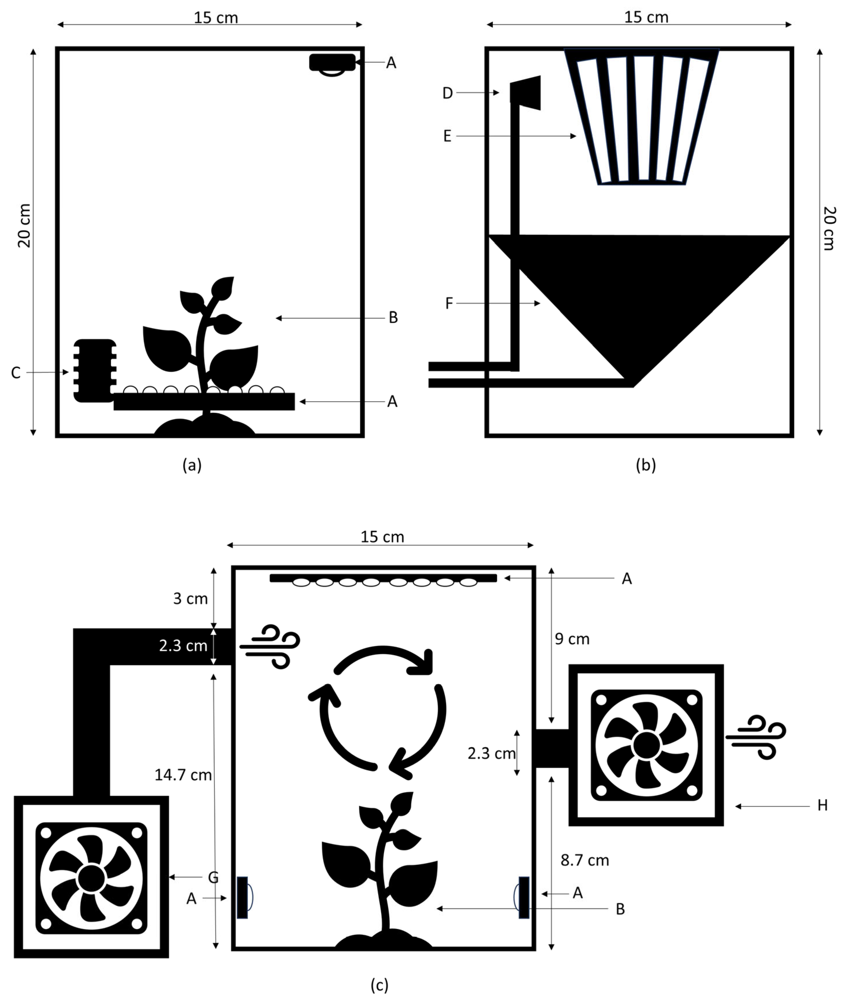 - Guerrero-Sánchez, J.; Olvera-Olvera, C.A.; Solis-Sánchez, L.O.; Martínez-Blanco, M.D.R.; López-Martínez, M.d.J.; Castañeda-Miranda, C.L.; Soto-Zarazúa, G.M.; Díaz-Flórez, G. Design and Implementation of a Low-Cost Controlled-Environment Growth Chamber for Vegetative Propagation of Mother Plants. Agriengineering 2025, 7, 177. [Google Scholar] [CrossRef]