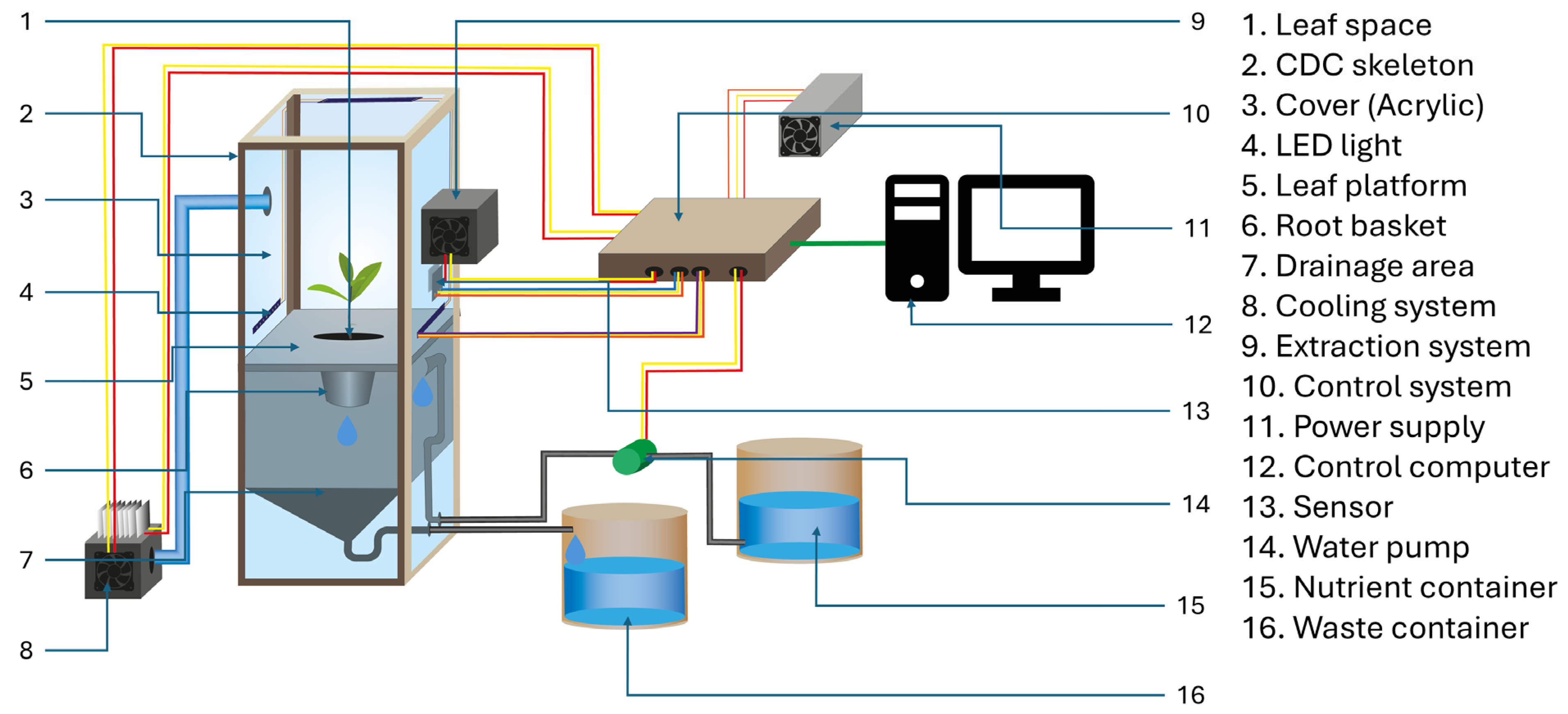 - Jara-Villagrana, M.F.; Olvera-Olvera, C.A.; Villagrana-Barraza, S.; Castro-Tapia, S.; Ibarra-Delgado, S.; Gómez-Rodríguez, J.R.; Sandoval-Aréchiga, R.; Rodríguez-Abdalá, V.I.; Díaz-Flórez, G. Conceptual Design Based on Modular Platforms for a Prototype of a Functional Growth Chamber for Cuttings in Controlled Agriculture. Designs 2025, 9, 86. [Google Scholar] [CrossRef]