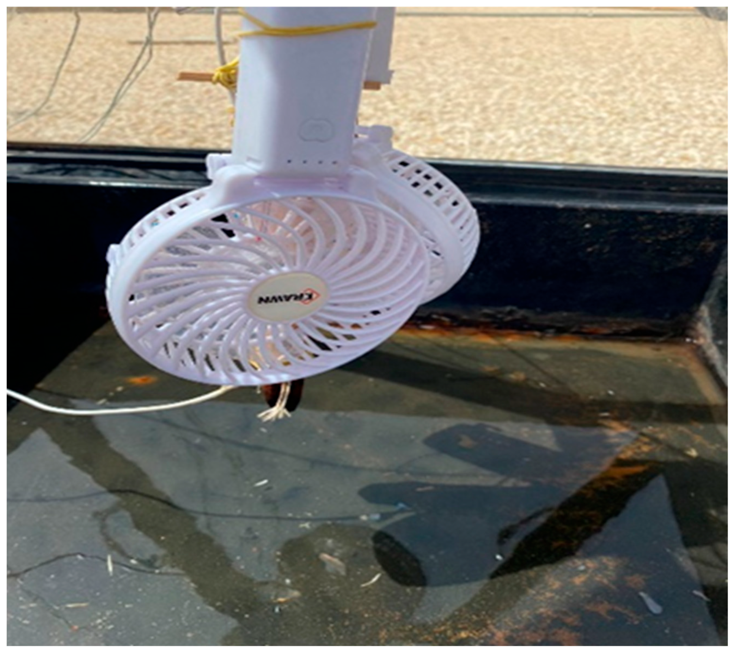 | Fans | Improved Airflow: By moving air around, fans can accelerate evaporation rates and aid in the still’s humidity removal. Cooling Effect: Fans can help improve condensation on the cover by moving air around the region of interest. Temperature Control: The temperature of the still can be regulated with the help of fans, especially in warm climates. Using fans increase the daily distillate water production by about 11%. | Energy Requirement: Fans may require electricity or another power source, which off-grid applications may not be able to provide. Maintenance: Over time, mechanical components may need to be replaced or wear out, which could lower reliability. |