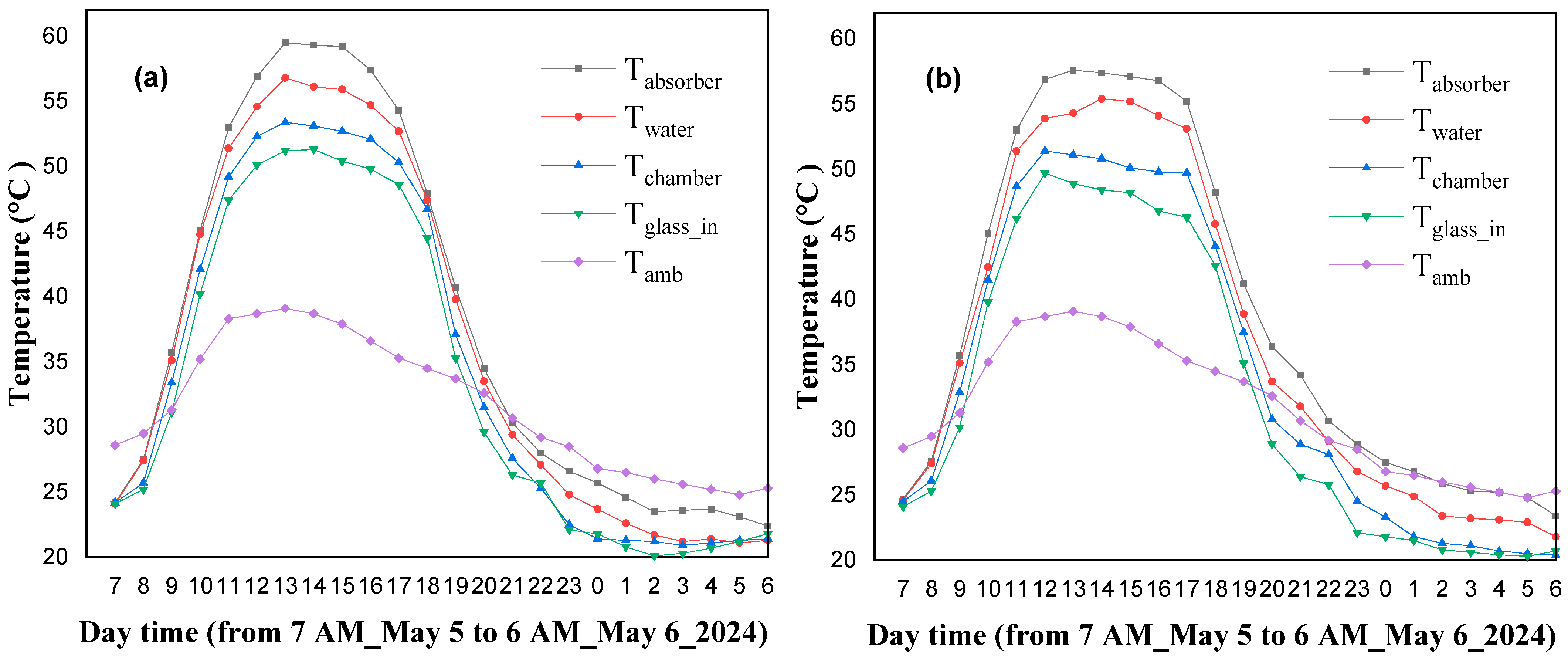 3.1. Effect of Using Fans to Enhance the Performance of the Solar Still